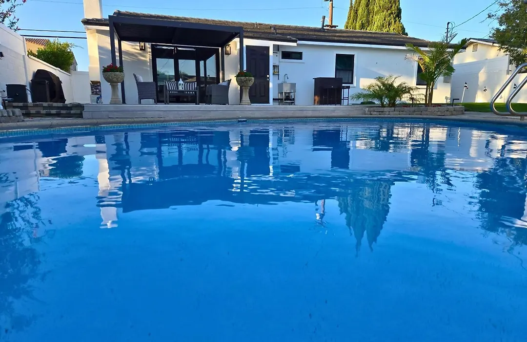 In der Villa Modern Luxury Huntington Beach Retreat können Sie den Blick auf den Pool genießen. Diese Unterkunft in Huntington Beach verfügt über ein Badezimmer mit einem Bidet, einer begehbaren Dusche und einer getrennten Toilette. Es gibt einen Haartrockner, einen Wäschetrockner und Handtücher für zusätzlichen Komfort.